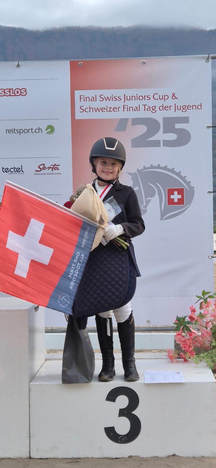 Larina belegte den guten 16. Schlussrang und Ella stand mit der Bronzemedaille auf dem Podest, herzliche Gratulation! Beide ritten auf der Ponystute Honey Girl.